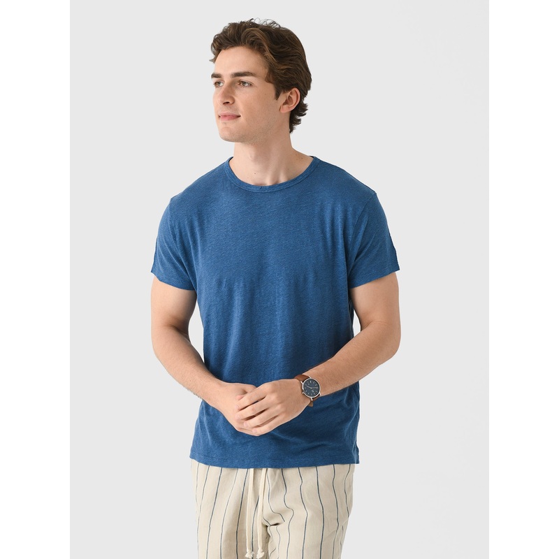 DESCRIPTION:A natural linen crewneck tee made with sustainably grown French linen and dyed with organic pigments.FEATURES:Crew NecklineShort Sleeves100% LinenClassic FitModel is wearing size Medium tee.Steel: Model's Measurements: Height: 6'2" | Waist: 32"