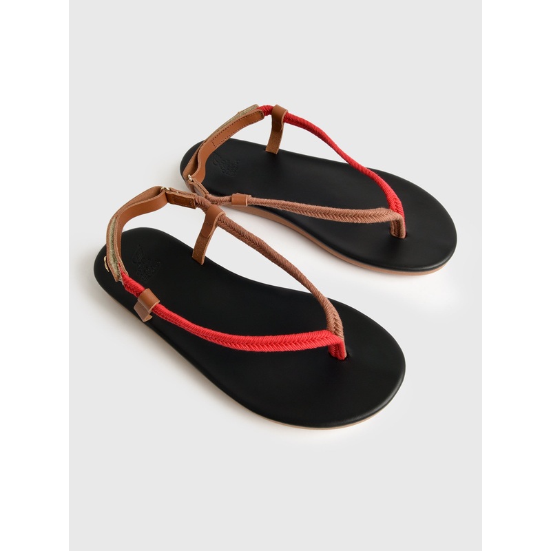 DESCRIPTION:A minimal sandal with a two-tone braided cord upper, velcro ankle strap, and rubber sole.FEATURES:Round ToeAdjustable Ankle StrapCord/Leather/RubberHeel Height: 1.1 in.Handmade in Greece