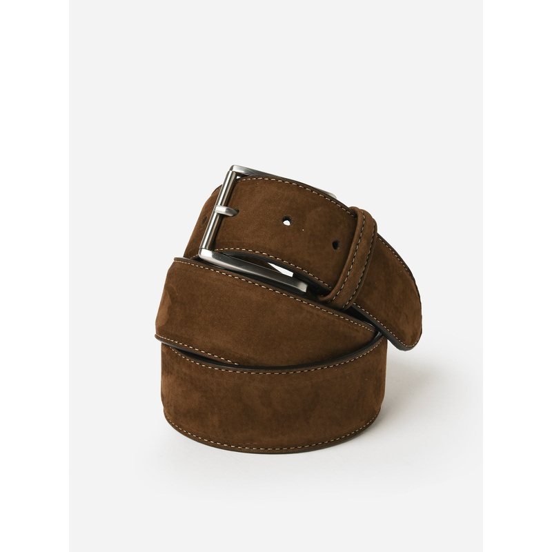 DESCRIPTION:Sueded leather belt with contrast stitching.FEATURES:BeltSilver BuckleContrast StitchingLeather Material