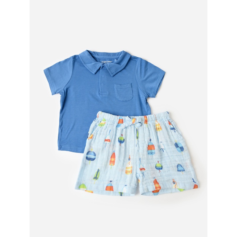 Angel Dear Baby Boys’ Muslin Short + Polo Shirt Set