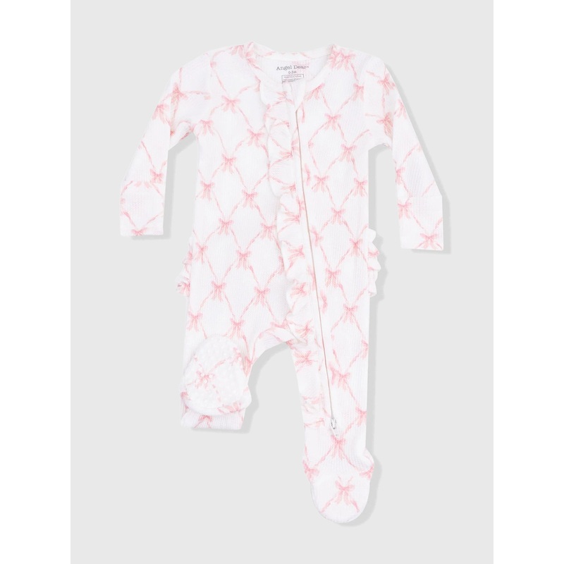 Crafted from a soft and cozy bamboo viscose blend in a textured waffle knit, this footie features a charming bow print thats sure to bring endless smiles. A convenient zipper runs from neck to toe for easy changes, while delicate ruffle accents add an extra touch of sweetness.