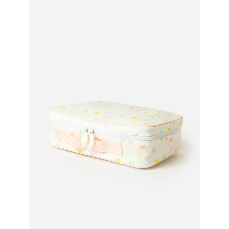 Water-resistant lunchbox equipped with an inner mesh pocket and fun novelty print.