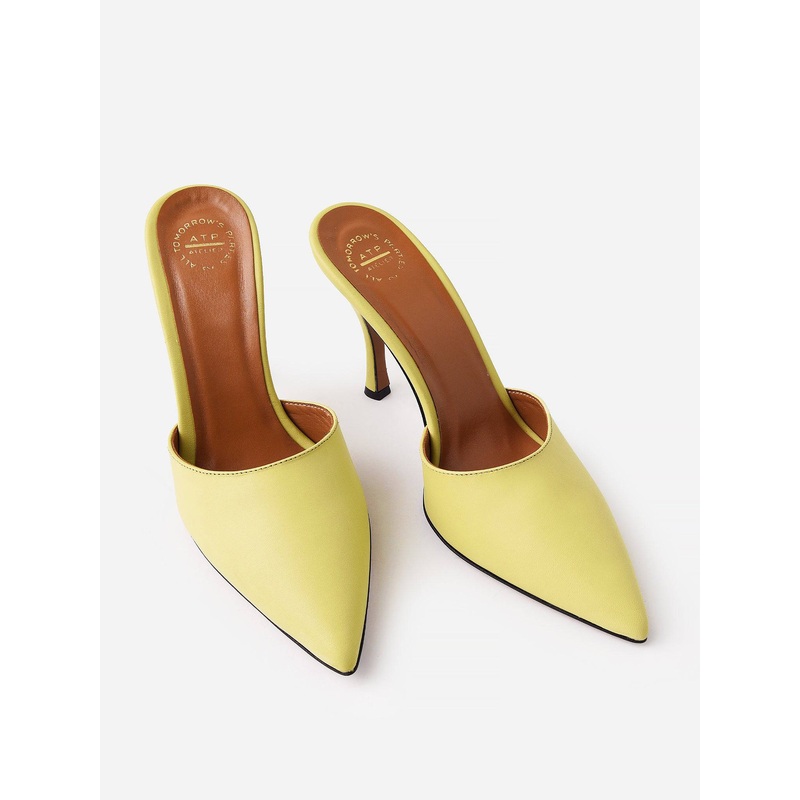 DESCRIPTION:Heeled mule with a pointed toe.FEATURES:Heeled MulePointed ToeVegetable Tanned Vacchetta LeatherHeel Height: 3.5 in.