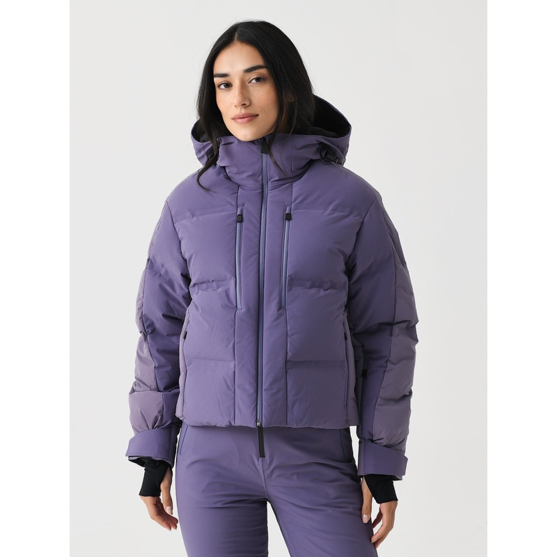 DESCRIPTION:A down-insulated jacket with tonal matte textures and a unique slightly cropped silhouette.FEATURES:Adjustable HoodZip Chest PocketsRibbed Knit CuffsSki Pass PocketSide Zip PocketsSlight Cropped SilhouetteWater-Repellent FinishDown InsulationRe