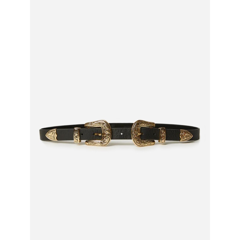 DESCRIPTION:A western-inspired belt made from genuine leather featuring double buckles.