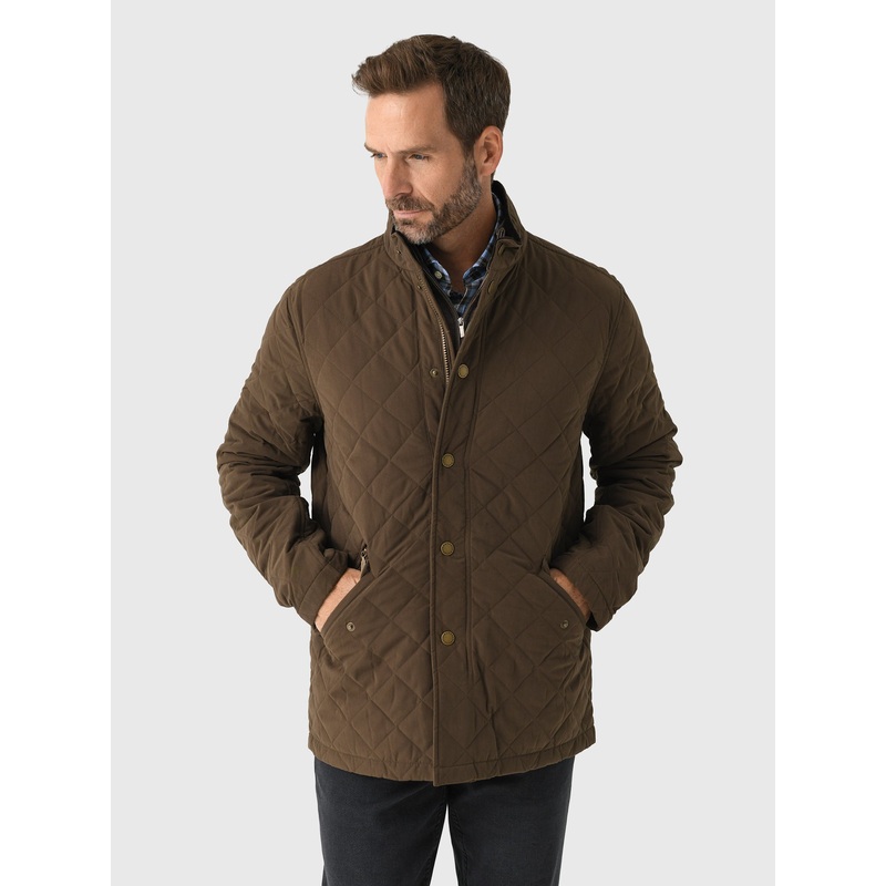 DESCRIPTION:Diamond quilted jacket with lightweight insulation.FEATURES:Stand-Up CollarSide PocketsFull Zip Closure, Snap PlacketQuilted Fabrication100% PolyesterClassic FitModel is wearing size Medium jacket.Dark Olive: Model's Measurements: Height: 6'0"