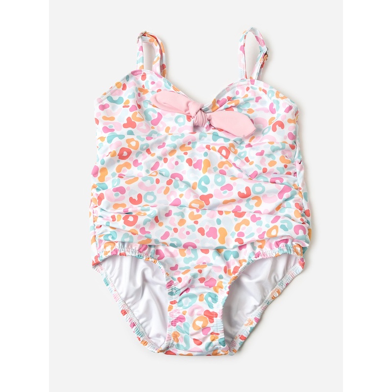 DESCRIPTION:A colorful one-piece swimsuit with a fun cheetah print and center knot detail.FEATURES:Sweetheart NecklineThin, Adjustable StrapsCenter Knot DetailModerate CoverageFull CoverageAll-Over Novelty PrintPolyester BlendClassic Fit