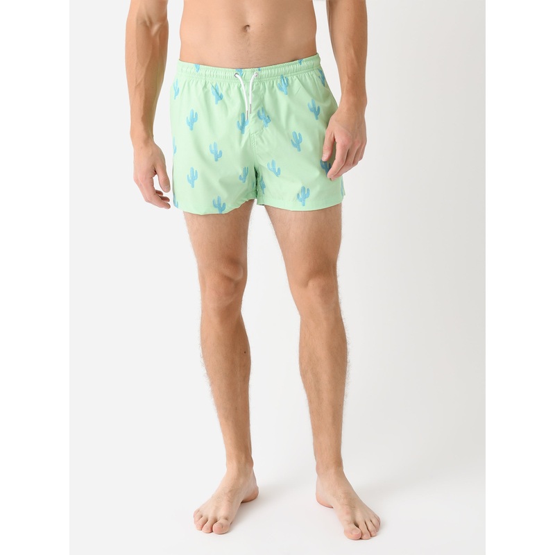 A lightweight swim trunk made from quick-drying fabric with a custom cactus print.