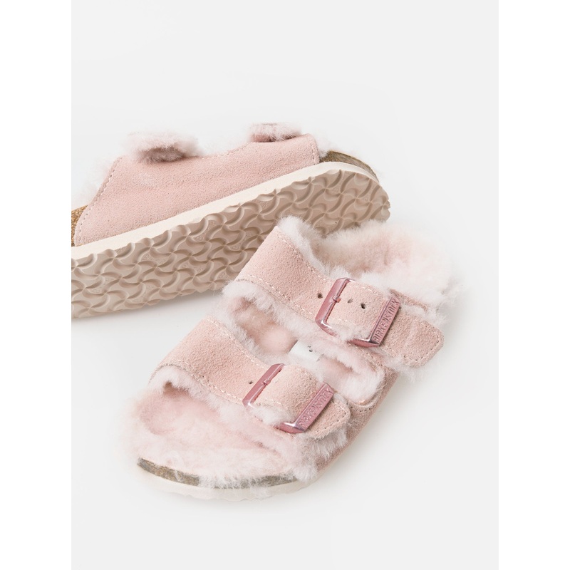 DESCRIPTION:A classic, double buckle sandal with a cozy shearling lining.FEATURES:Round ToeAdjustable Double BucklesAnatomically Shaped FootbedUpper: SuedeFootbed Lining: ShearlingFootbed: CorkSole: EVARegular Fit