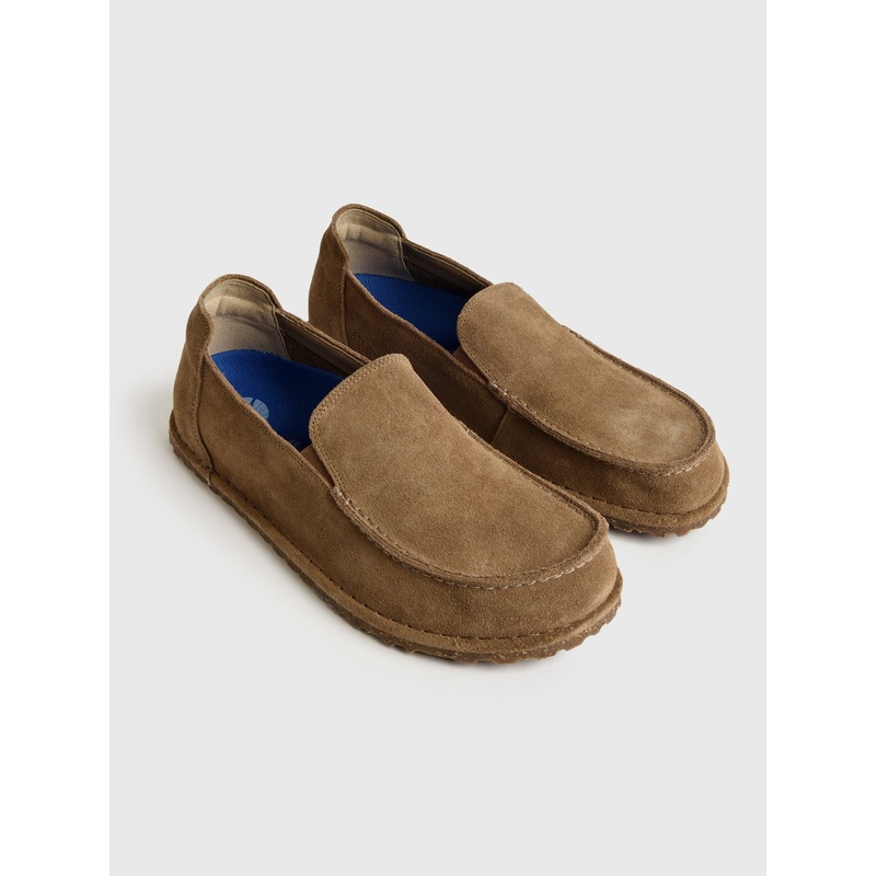 This loafer elevates the classic moccasin with its modern design and luxurious comfort. The soft suede upper, stitching, and supportive footbed create a stylish and functional shoe.
