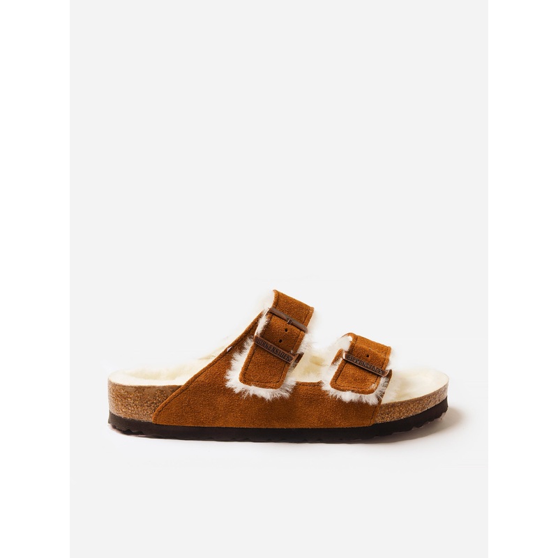 Crafted from classic suede, this cozy sandal offers a velvety feel and is fully lined in genuine shearling, including the original contoured footbed. The result is a soft, supportive landing with every step.