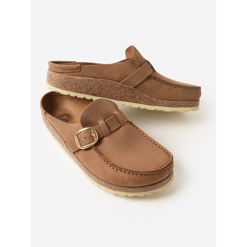 DESCRIPTION:A semi-open moccasin-style clog with a molded cork-latex footbed and adjustable strap.FEATURES:Round ToeAdjustable BuckleAnatomically Shaped Cork-Latex FootbedUpper: Oiled Nubuck LeatherLining: SuedeSole: EVANarrow Fit