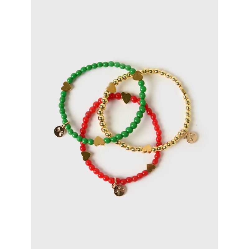 DESCRIPTION:The Christmas Hearts Bracelet Set is a delightful addition to any little girl's jewelry collection. The colorful and playful design allows for endless styling possibilities.FEATURES:Set of 3 BraceletsStretch FitMaterial: Beads, Metal & Plastic