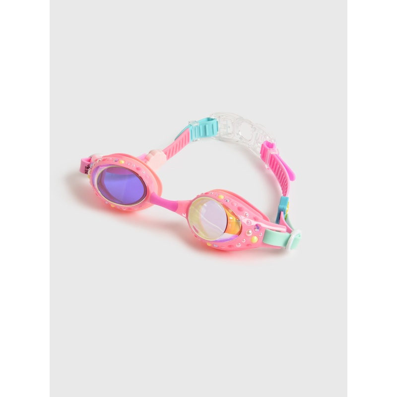 DESCRIPTION:Featuring shimmering rhinestones and playful beach-inspired sliders, this swim goggle is as stylish as it is fun. Plus, the easy-on back clip ensures a secure, no-tug fit, making it perfect for endless pool days, beach trips, and water adventur