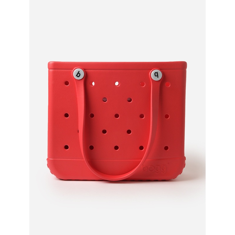 A bright red tote bag with a tip-proof design and convenient washable construction.
