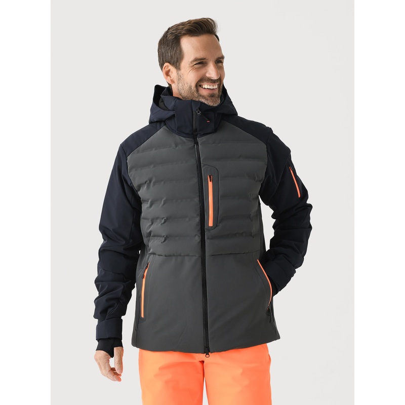 DESCRIPTION:A practical, mountain-ready ski jacket made from a water-repellent stretch outer with warm, Thermore Ecodown insulation.FEATURES:Removable HoodZip Chest PocketThumbhole CuffsSki Pass PocketSide Zip PocketsFull Zip ClosureRemovable Snow SkirtDra