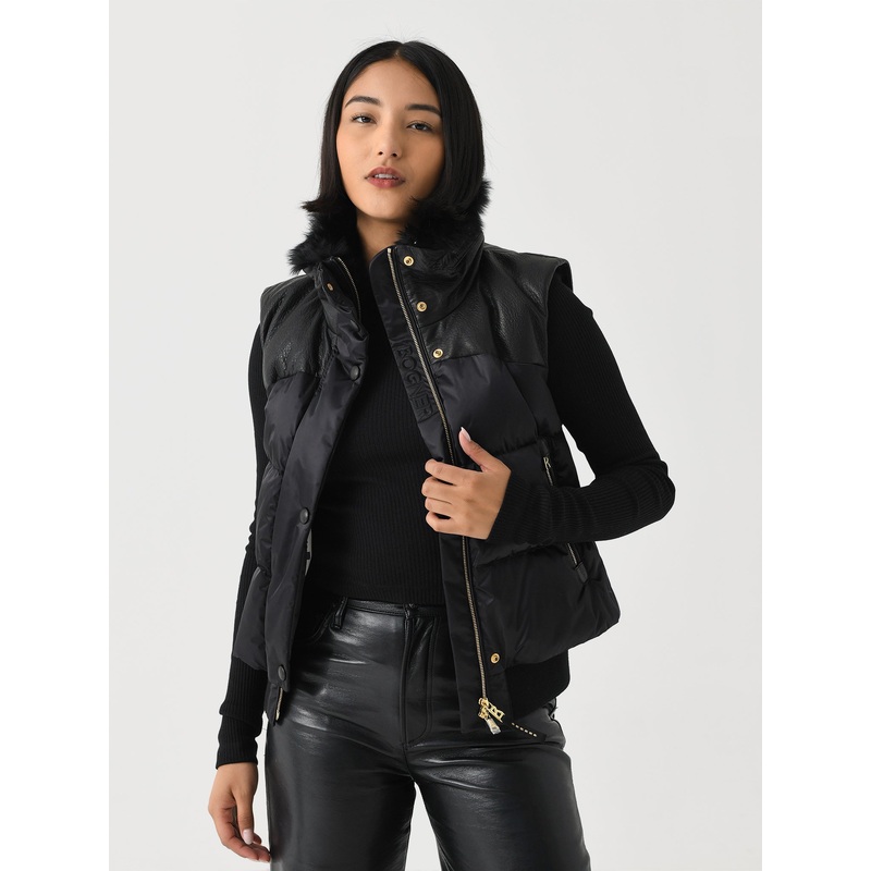 DESCRIPTION:The Nelli Down Vest is a luxurious blend of style and function. Crafted from recycled nylon and Nappa leather, this quilted vest offers warmth and durability.FEATURES:Stand-Up CollarSide Zip PocketsInterior PocketTwo-Way Zip ClosureSnap Placket