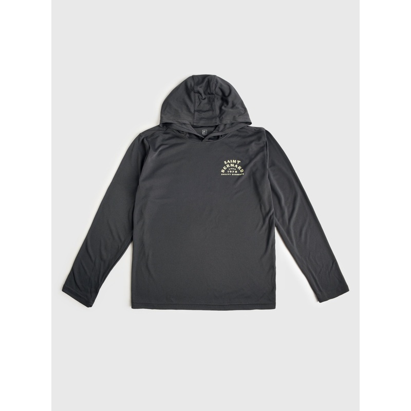 DESCRIPTION:A comfortable hooded sun shirt made from breathable performance fabric designed to be worn in the sun or out on the water.FEATURES:Attached HoodGraphic on Left Chest and BackLong SleevesPerformance Fabrication100% PolyesterClassic FitUPF 50