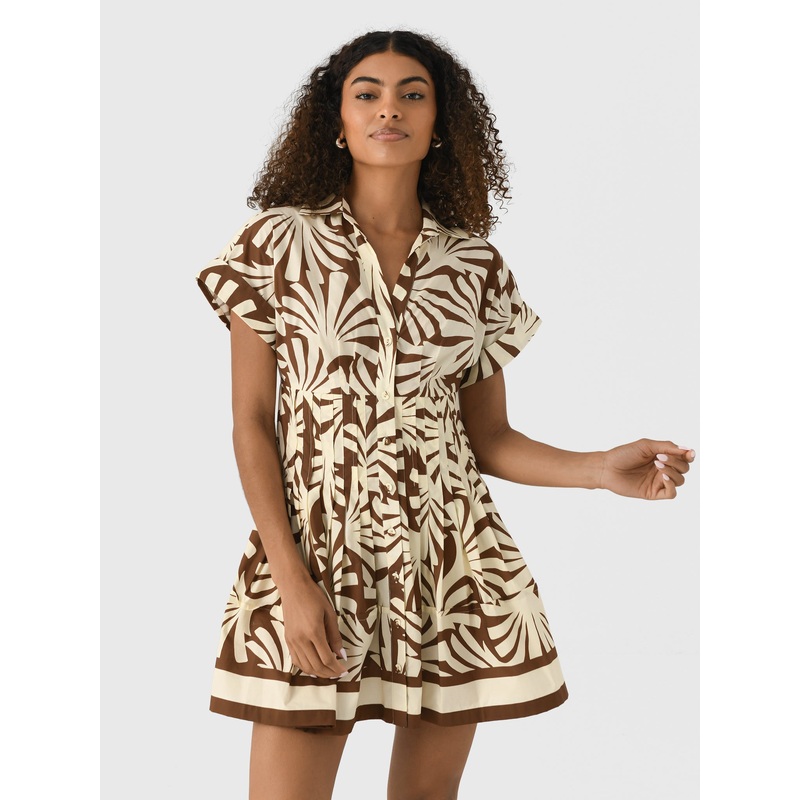 This charming cotton dress exudes vintage elegance with its delicate floral print and a flattering fit-and-flare silhouette. The collared neckline, button-front closure, and pintuck details create a timeless and feminine look.