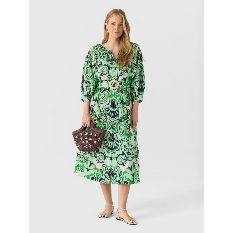 Embrace effortless style from day to night with the Simone Dress. Its breezy volume and eye-catching print make it perfect for easy summer days and warm evenings. Designed with elegant finished side slits, the skirt offers abundant movement, ensuring comfort and grace with every step.