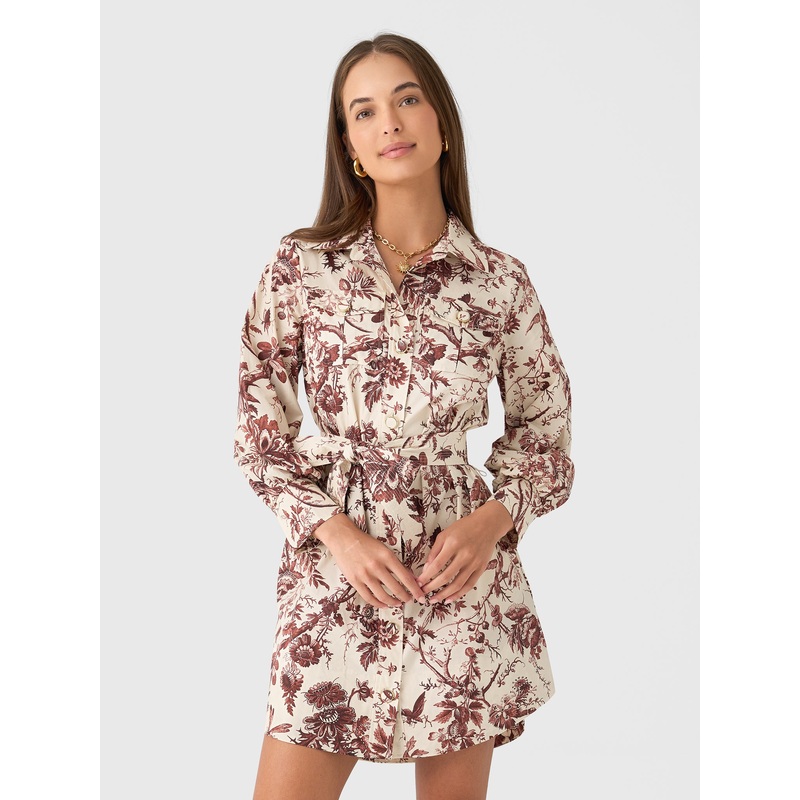 Elevated and refined, this mini dress is crafted from lightweight cotton and features a crisp collared neckline, billowy sleeves, and a self-tie belt to create a flattering, feminine shape. A forest-inspired print adds a sophisticated, nature-infused touch to the timeless silhouette.