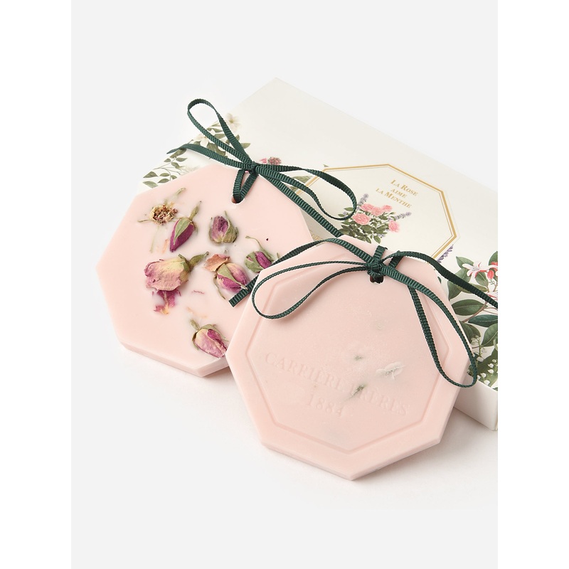 A set of two scented diffusing palets with notes of delicate rose complimented by herbaceous mint.