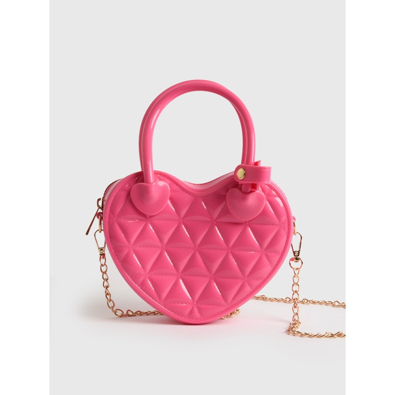 DESCRIPTION:This versatile bag can be carried by the handle or worn as a crossbody with a detachable chain strap. It's perfect for adding a touch of personality to any outfit.FEATURES:Zip ClosureDetachable StrapQuilted Plastic MaterialOne Size