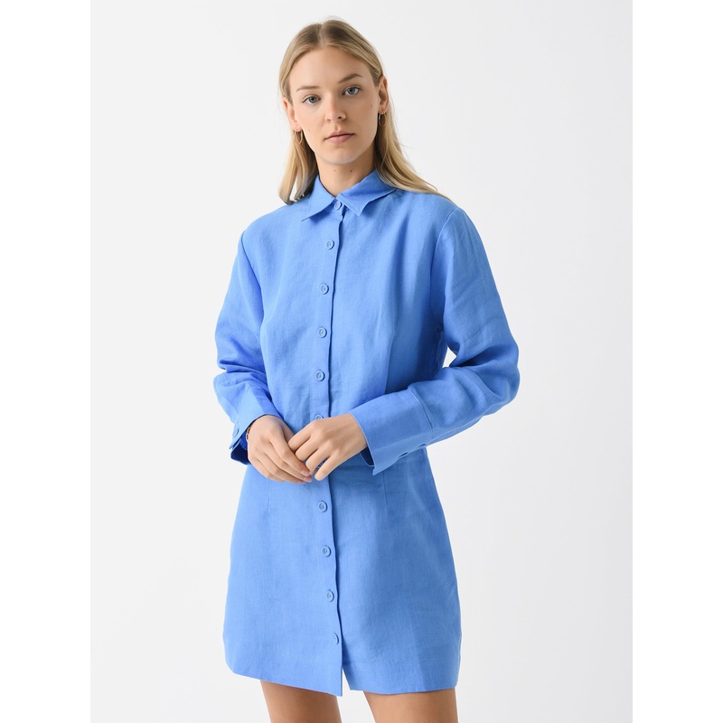 DESCRIPTION:A versatile mini-shirt dress made from organic linen that can be dressed up or down.FEATURES:Spread CollarButton CuffsButton-Down FrontMini Silhouette100% Organic LinenClassic FitModel is wearing size Small dress.Model's Measurements: Height: 5