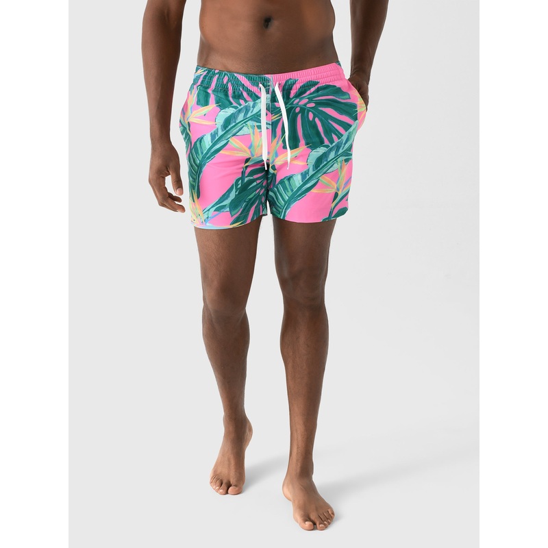 With a vibrant tropical print, this stylish swim trunk is a must-have for your summer wardrobe.