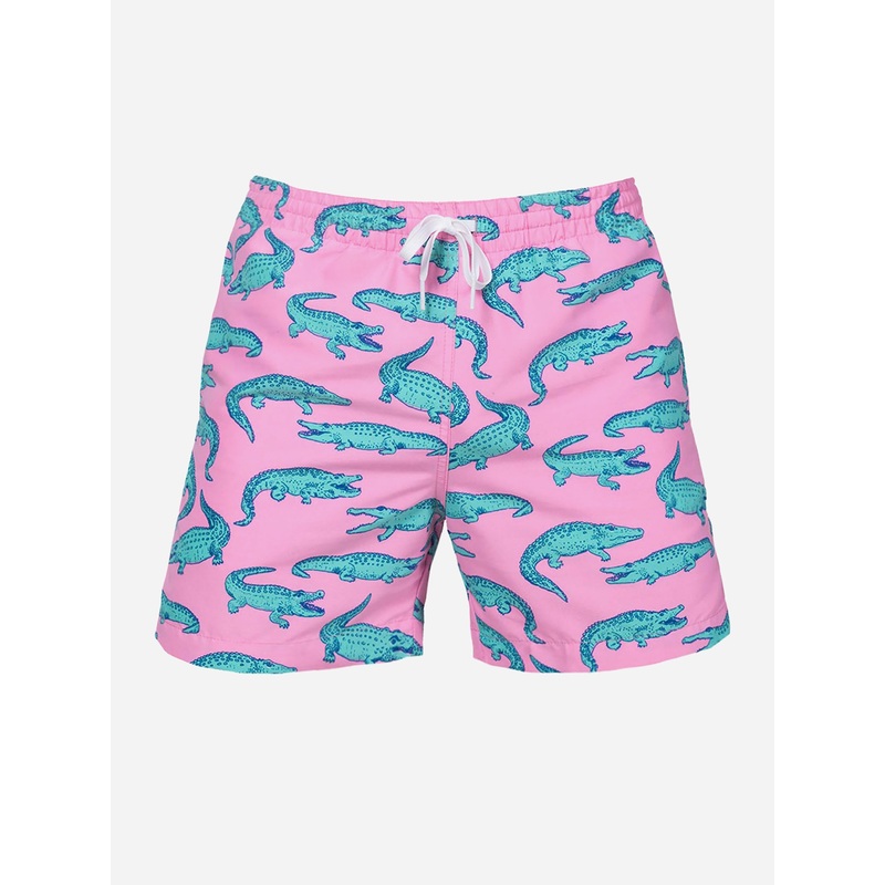 DESCRIPTION:Bright swim trunk with a fun novelty print and comfortable liner.FEATURES:Elastic WaistbandAdjustable DrawstringSide PocketsBack Right Zip PocketMesh LinerInseam: 7 in.4-Way StretchQuick-DryingAll-Over Novelty PrintShell: 92% Polyester, 8% Span