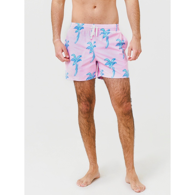 DESCRIPTION:A stretchy swim trunk with a custom palm tree print.FEATURES:Swim TrunkElastic WaistbandAdjustable DrawcordBack PocketHand PocketsInseam: 4 in4-Way StretchAll-Over Novelty Print90% Polyester, 10% SpandexModel is wearing size Medium swim trunk.M