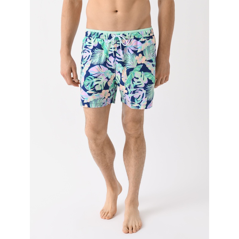 DESCRIPTION:A classic, quick-drying swim trunk with a built-in mesh brief liner and a colorful tropical foliage print.FEATURES:Elastic WaistbandAdjustable DrawstringSide Pockets, Back PocketStretch Mesh LinerInseam: 5.5 in.All-Over Novelty Print4-Way Stret