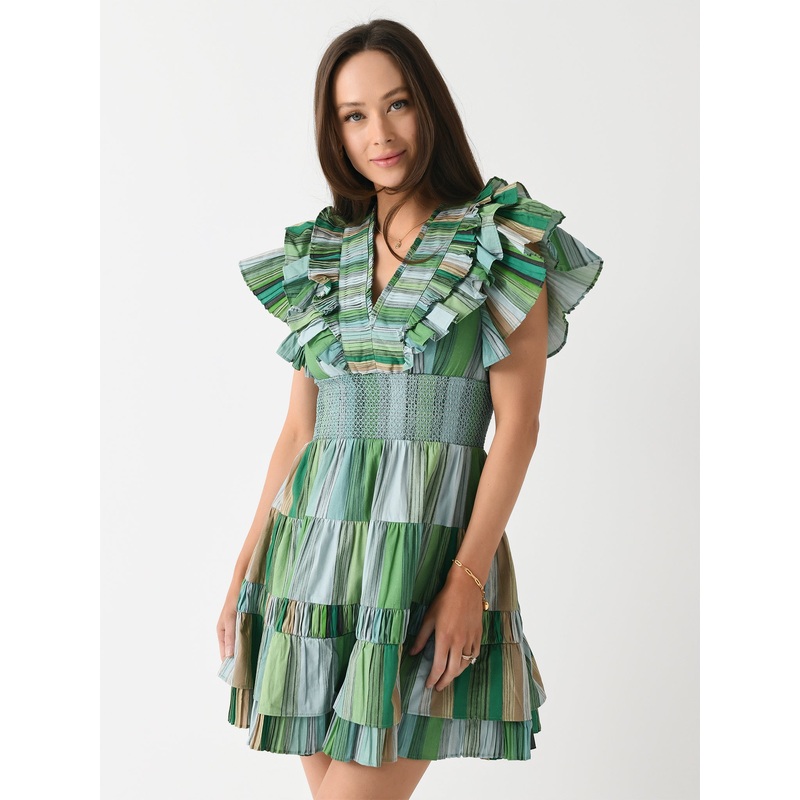 DESCRIPTION:A feminine dress featuring layers of pleated ruffles, an open back, and a fitted smocked waist constructed from mindfully made organic cotton poplin.FEATURES:V-NecklineLayered Pleated RufflesBack Tie ClosureOpen BackSmocked WaistTiered SkirtMin