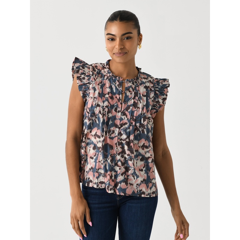 DESCRIPTION:This ethically made blouse combines comfort and style. Its high neckline with pintucks and button detailing adds a touch of elegance, making it perfect for everyday wear.FEATURES:Ruffle CollarFlutter SleevesPintuck DetailsButton-Down FrontAll-O
