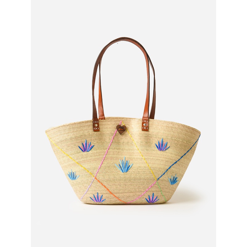 DESCRIPTION:A large embroidered tote bag designed for days out or vacations at the beach. FEATURES:Leather StrapsOpen TopDetachable LiningEmbroidered DesignNatural Palm Leaf ConstructionDimensions: 25 in. (Top) 12.5 in. (Base) L x 13 in. H x 4.5 in. D | Ha