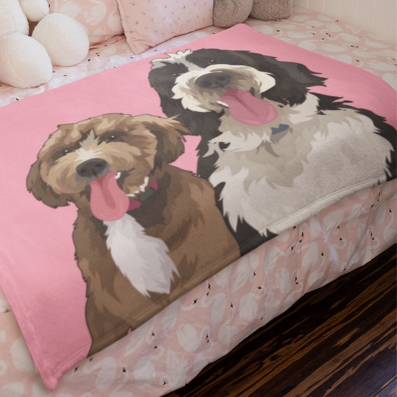 Design a custom pet blanket with your pet's image - dog, cat, rabbit, or otherwise! Print your pet's face on a soft cozy fleece custom blanket. Ideal for snuggling with your furry friends. Perfect if you love pop art and your pup or cat. Sizes are perfect
