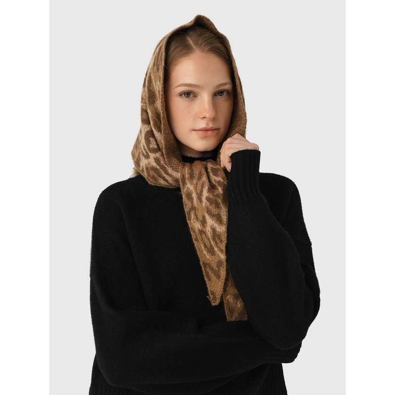 DESCRIPTION:This versatile scarf is a statement accessory that adds a bold touch to any outfit. It features signature DM leopard design, finished with contrast red DM embroidery. FEATURES:Triangle ShapeAll-Over Novelty PrintKnit Fabrication45% Acrylic, 30%