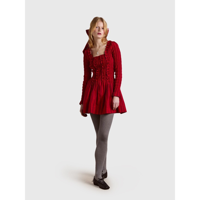 DESCRIPTION:This vintage-inspired mini dress is crafted from soft cotton and features a square neckline, long shirred sleeves, and a shirred bodice that creates a flattering shape. A gathered skirt and delicate ruffle detailing add a touch of effortless fe