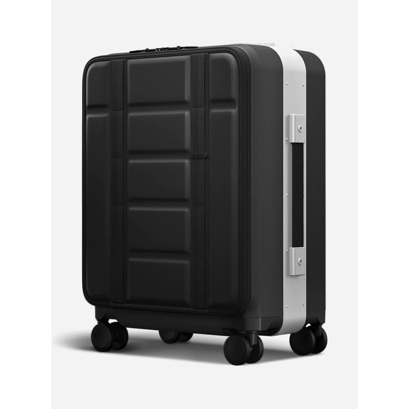 This innovative carry-on suitcase features a convenient front-access pocket and a classic split-shell design for ample storage.