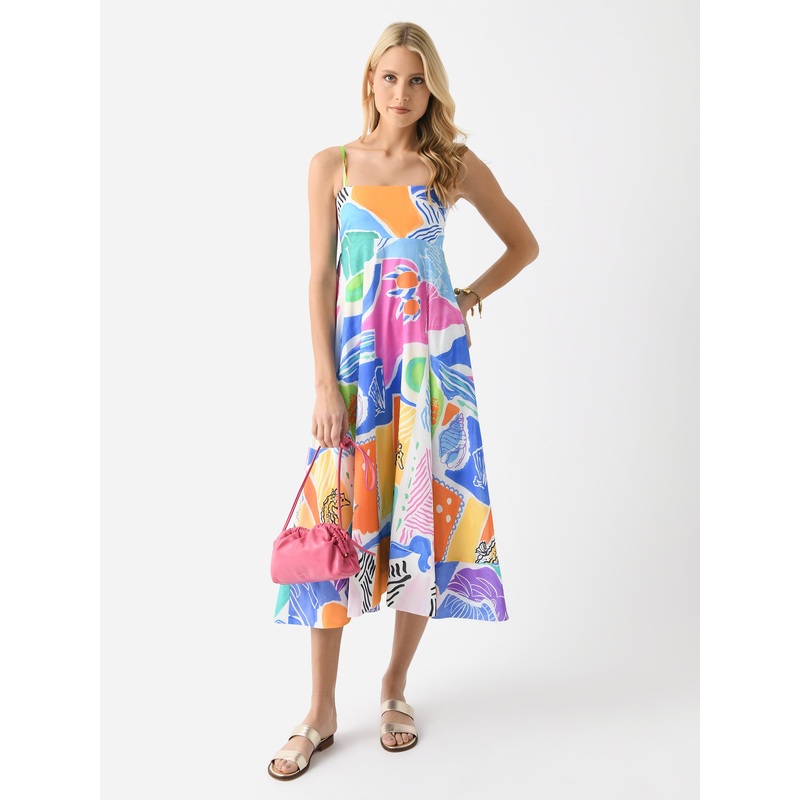 DESCRIPTION:A classic sundress made from colorful printed cotton with a flattering empire waist.FEATURES:Square NecklineThin, Adjustable StrapsBack Zip ClosureSmocked BackEmpire WaistMidi SilhouetteAll-Over Novelty Print100% CottonClassic FitModel is weari