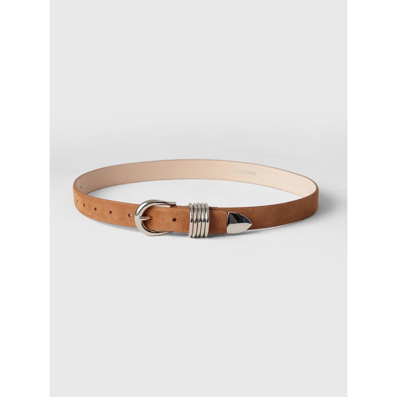 DESCRIPTION:A durable belt made from supple suede and finished with a high-shine metal buckle.