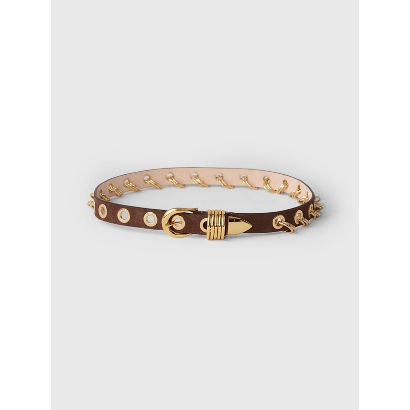 DESCRIPTION:A hand-crafted belt made from supple suede leather featuring bold grommet and ring details.