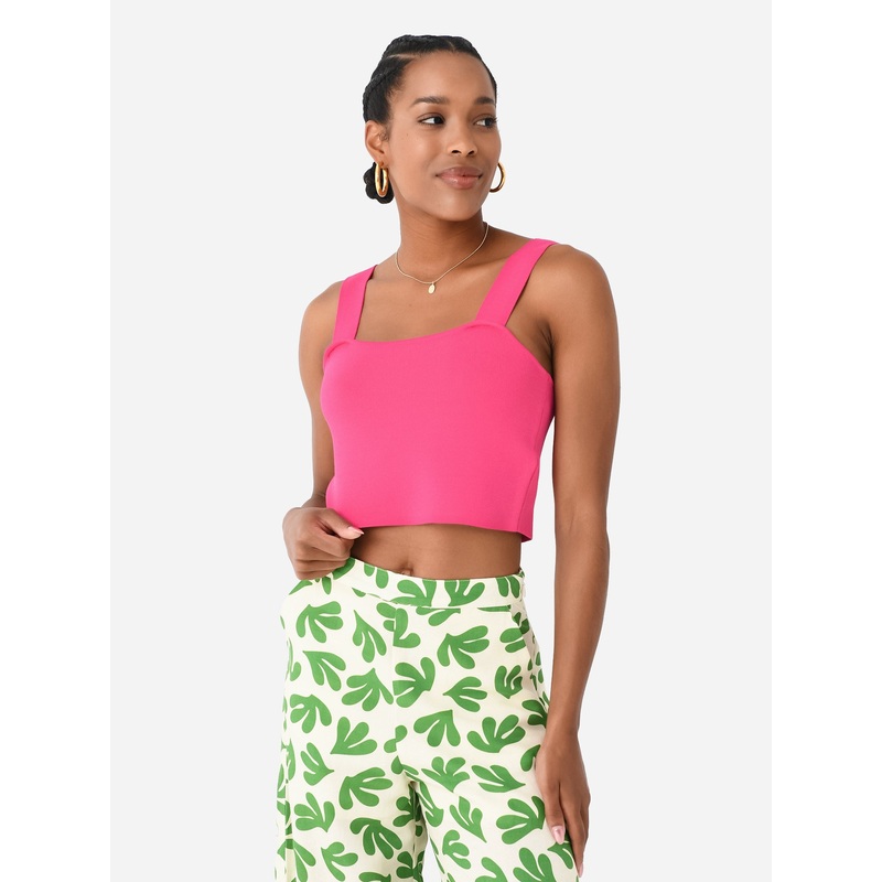 DESCRIPTION:Cropped top with wide straps and a square neckline.FEATURES:TopSquare NecklineFixed StrapsStraight HemCropped Silhouette65% Viscose, 35% PolyamideClassic FitModel is wearing size Small top.Model's Measurements: Height: 5'10" | Bust: 34B | Waist
