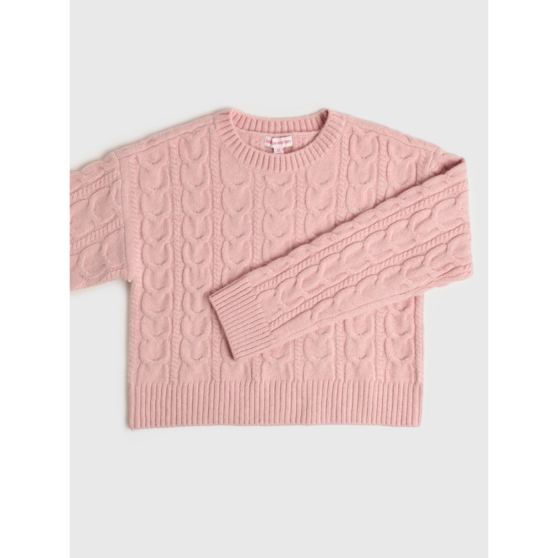 This chic sweater features a classic cable-knit design, complemented by a comfortable V-neckline and ribbed trims for a flattering fit.