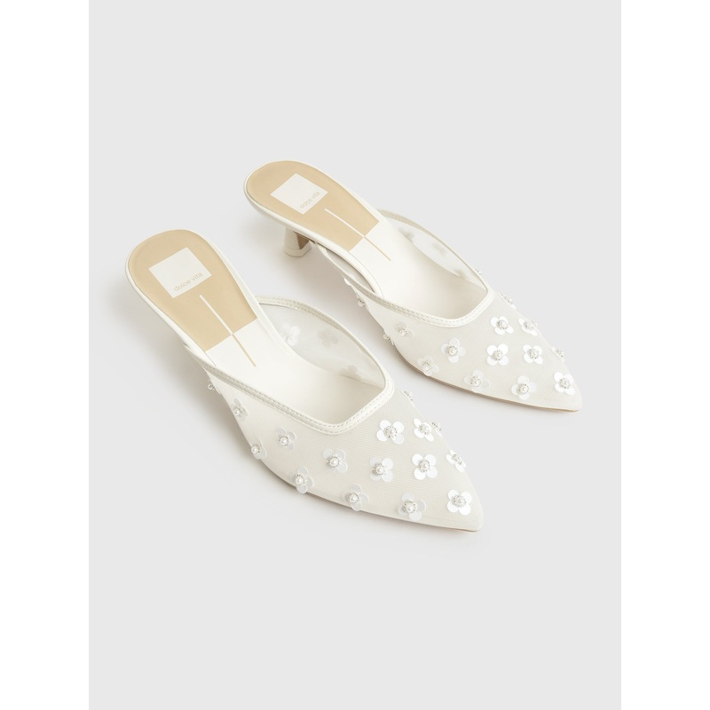 DESCRIPTION:The Clara Pearl Heel is a soft, dreamy, and undeniably chic kitten heel. Delicately crafted from recycled materials, it features a light mesh exterior adorned with creamy pearls and a refined pointed toe.FEATURES:Point ToePearl EmbellishmentsTe