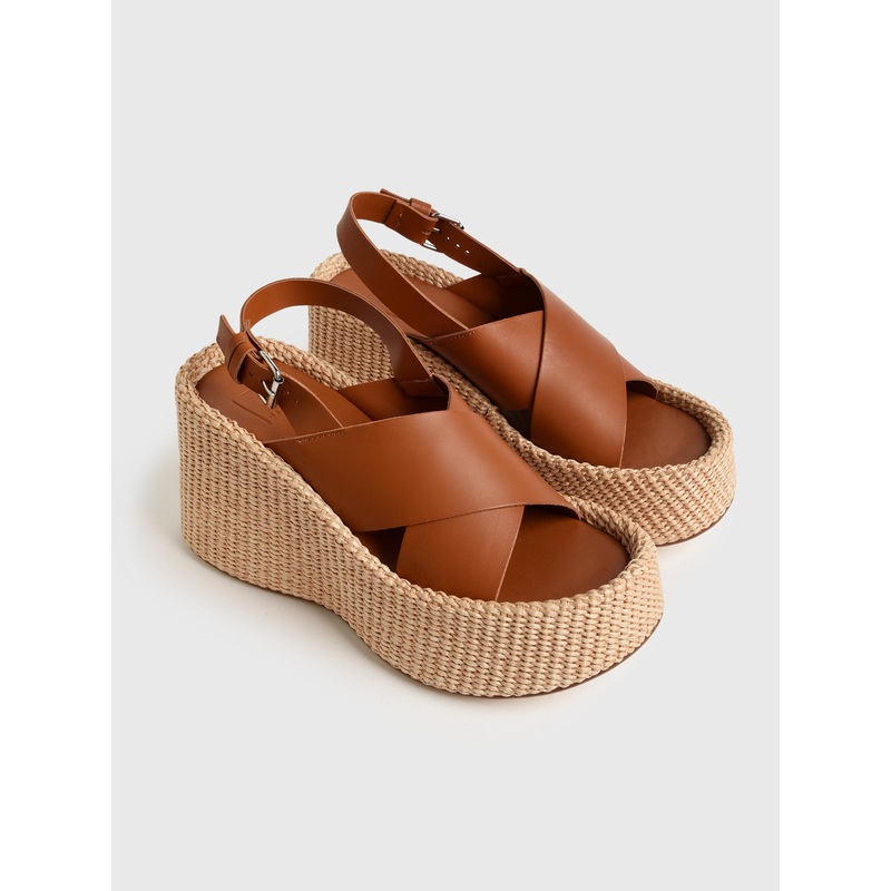 This statement shoe features a chunky heel, thick criss-cross straps, and a secure ankle buckle. Its bold, textured design adds effortless style to any outfit while lengthening your legs.