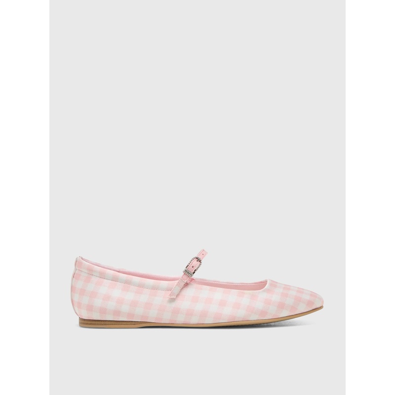 DESCRIPTION:The Reyes X Byrdie Golf ballet flat in a delightful pink and white gingham perfectly embodies this exciting footwear collaboration. Where Dolce Vita's iconic ballet flat meets Byrdie's signature feminine print, you get a fun yet timeless style