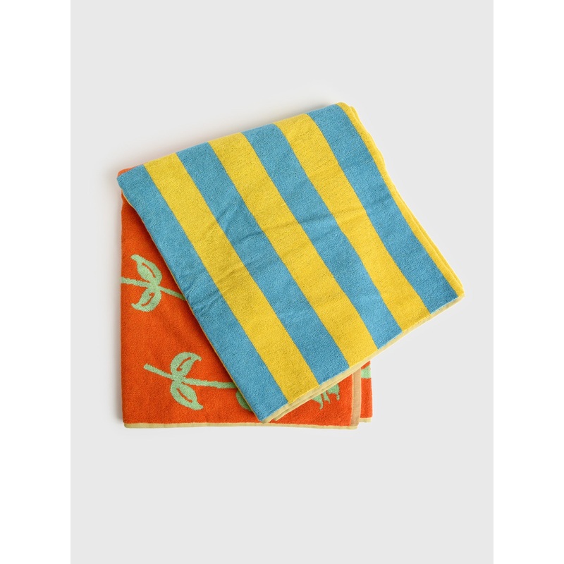 DESCRIPTION:A colorful beach towel made from soft cotton terry with a rose and stripe design.