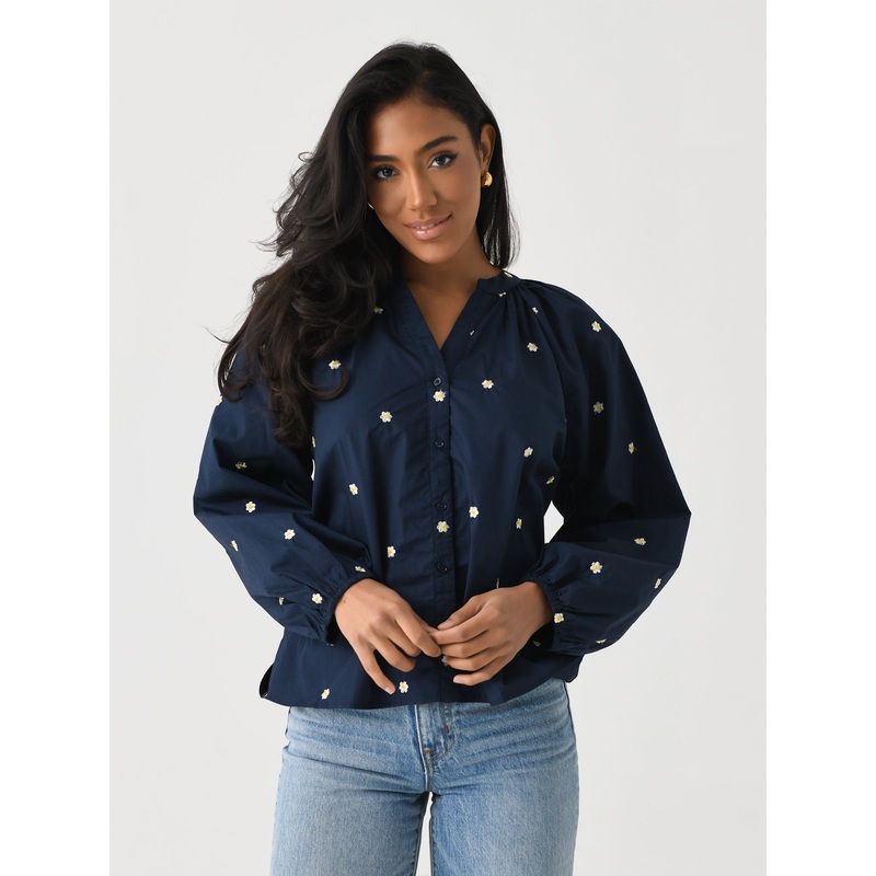 DESCRIPTION:A lightweight cotton blouse with puff sleeves and an all-over embroidered flower design.FEATURES:V-NecklinePuff SleevesButton-Down FrontAll-Over Embroidery100% CottonClassic FitModel is wearing size Small top.Model's Measurements: Height: 5'8"