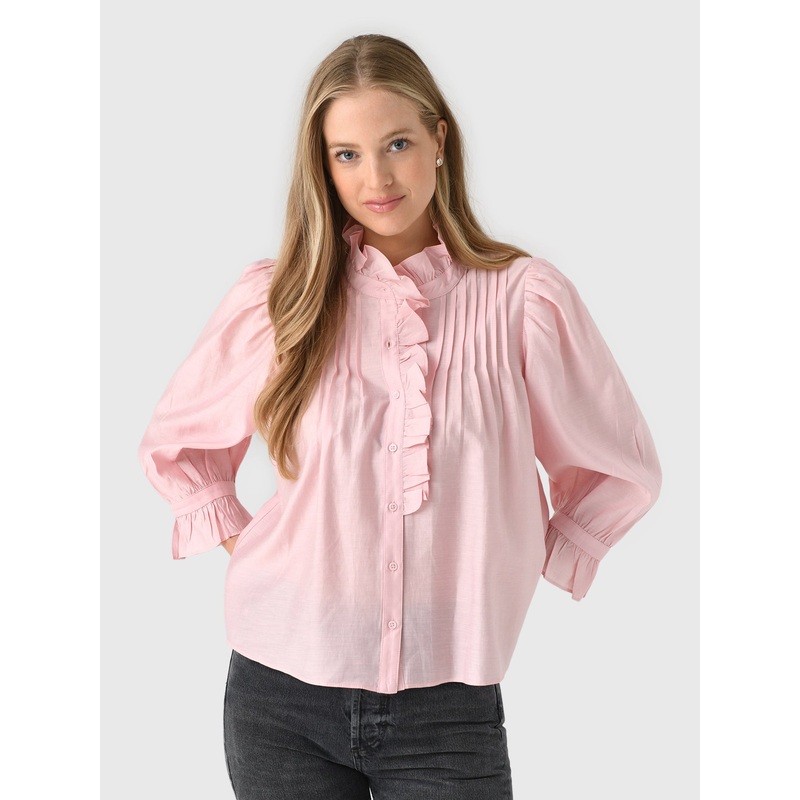This lightweight blouse offers an easy fit and effortless charm, featuring voluminous puff sleeves, delicate pintuck details, and feminine ruffle trims. Both versatile and polished, it’s perfect for dressing up or down with ease.
